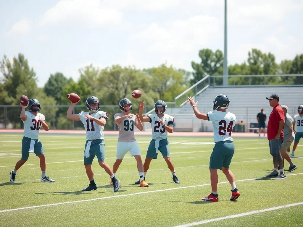 Oregon State University's football team is holding spring practice. The team has nine practices left, including three scrimmages. Coach JaMarcus Shephard will not name a starting quarterback until August. Three players, Maalik Murphy, Braden Atkinson, and Brady Jones, are competing for the job. They will rotate through position drills and participate in upcoming scrimmages. The coach wants to keep the starting quarterback decision secret to gain an advantage in their first game.