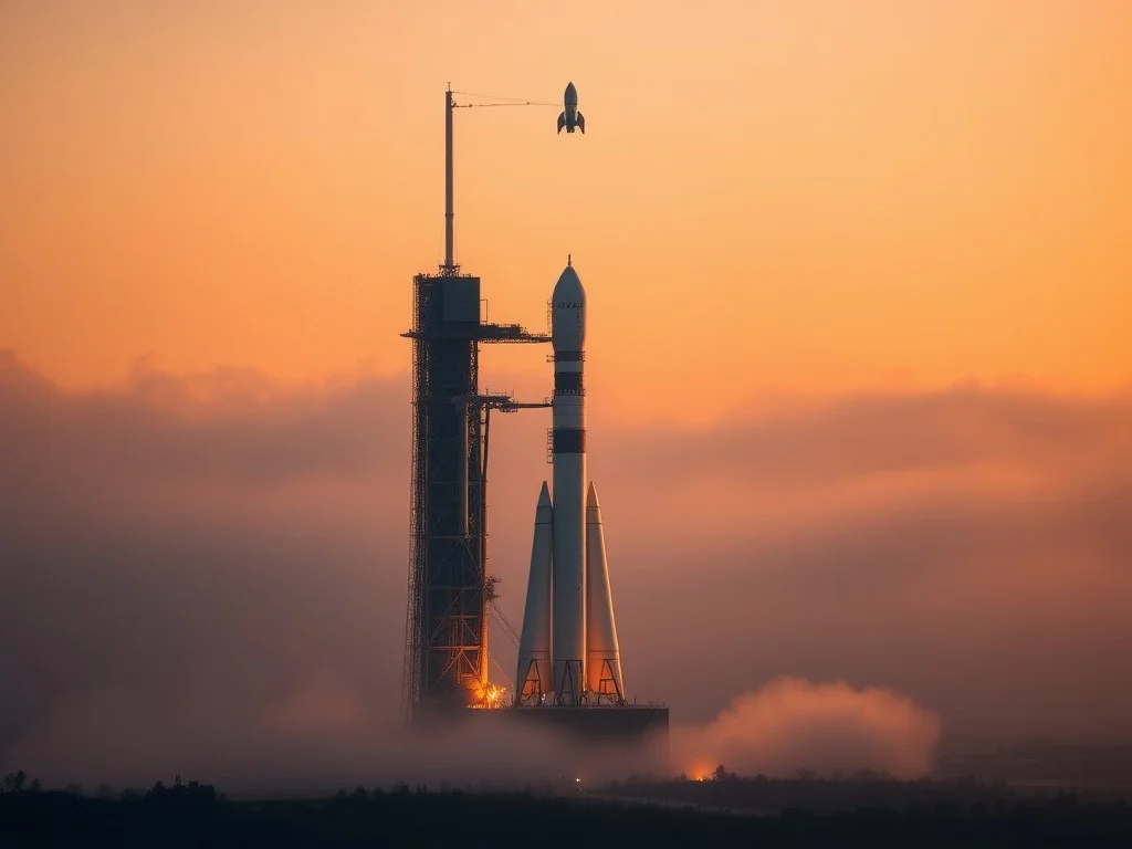 Blue Origin's New Glenn rocket is standing on the Cape Canaveral launch pad. The rocket is preparing for its third launch, with a payload of an AST SpaceMobile satellite. The launch is scheduled for no earlier than 6:45 a.m. Thursday, April 16. The New Glenn rocket is 321-feet-tall, one of the largest rockets in history. Blue Origin aims to launch the rocket more frequently, with plans to launch up to 12 times per year from Cape Canaveral. The rocket's first stage booster will attempt to land on a platform at sea after liftoff.