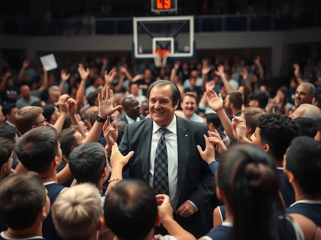 Michigan coach Dusty May will continue to lead the Wolverines for many years to come. Athletic director Warde Manuel made the announcement during a ceremony celebrating the team's NCAA Tournament championship. May led Michigan to a national title in his second season, going 37-3 and beating UConn 69-63 in the championship game. He has an overall coaching record of 190-82. May's new deal was met with a standing ovation and chants of 'Dusty!' from the crowd.